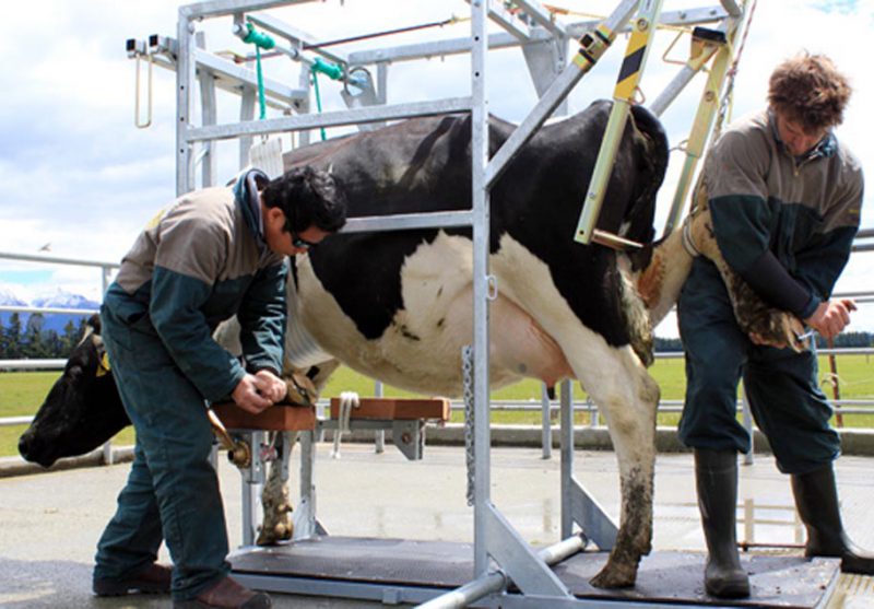 Hoof trimming is a crucial part of dairy cow management, ensuring proper hoof health and preventing lameness, which can significantly affect milk production and overall cow well-being.